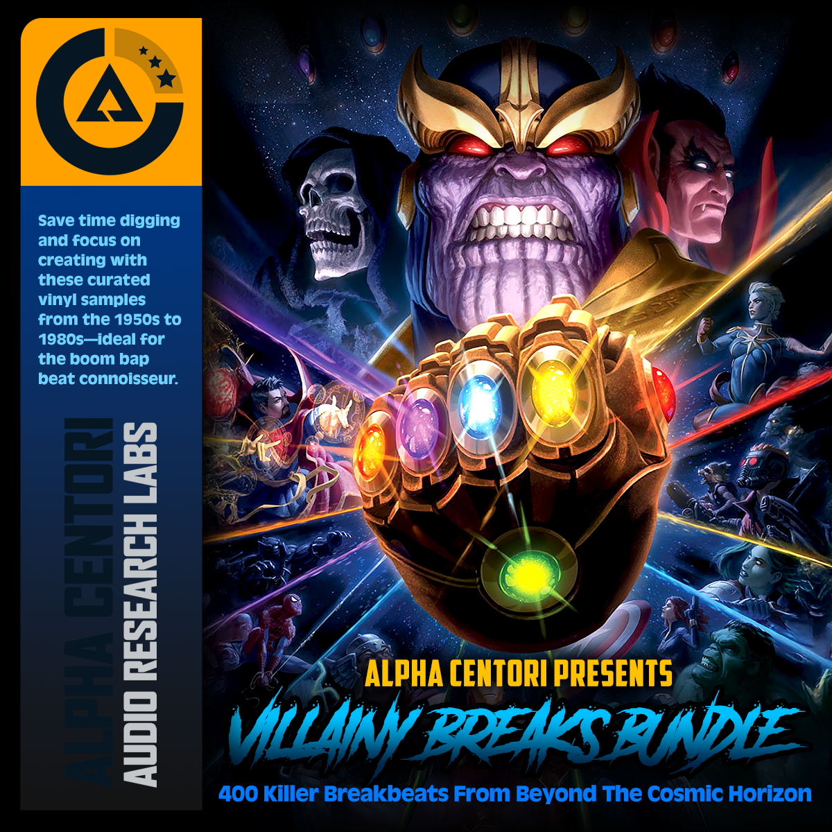 Step into the golden era of breakbeats with Alpha Centori's Villainy Breaks Bundle. This meticulously curated bundle features 400 drum breaks and represents countless hours of listening and digging through old, dusty vinyl records. Sourced from hard-to-find funk, soul, rock, and foreign music, each break has been carefully selected for its unique character and authenticity, ensuring that you get only the highest quality sounds for your beats. These breaks are essential for boom bap producers seeking to capture the raw, gritty essence of classic hip-hop. Alpha Centori's expert ear and dedication to preserving the essence of vintage records bring you a sound library that is both timeless and indispensable for serious producers. All breaks are in universal WAV format at 44.1 kHz sample rate and 16-bit resolution. Please note: These breakbeats are not royalty-free, and sample clearance is not included.